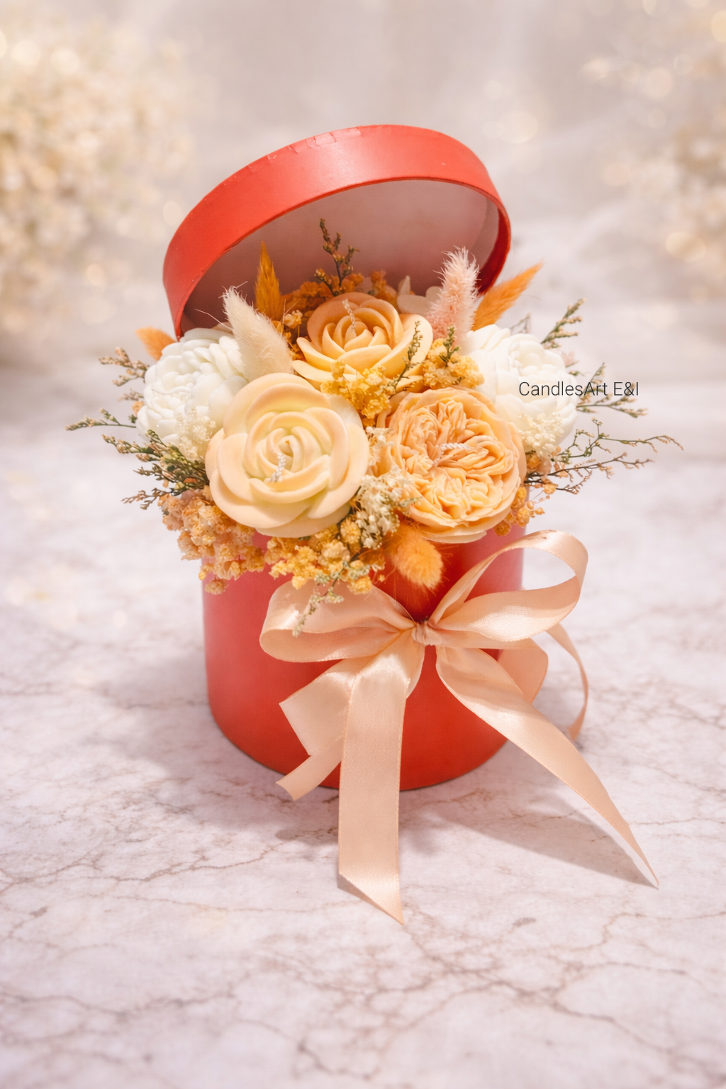 Aranjament cu lumanari din ceara se soia 100% naturala.